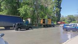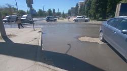 У администрации Заводского района Саратова наблюдается потоп. Вода течет по улице Барнаульской и вытекает на проспект Энтузиастов.