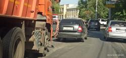 Участники аварии заняли левую и правую часть полосы. В результате движение транспорта на указанном участке затруднено, отмечают автомобилисты.