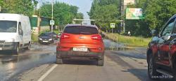 Так, автомобилисты сообщают, что в Солнечном на улице Антонова после дождя машины вынуждены были ехать по центру дороги. Края проезжей части утопали в воде.