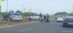 "На обочине перевернут велосипед, лежит сумка с надписью "Самокат", на месте работает ГИБДД", - рассказал очевидец.