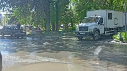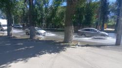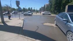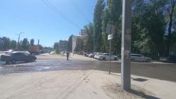 У администрации Заводского района Саратова наблюдается потоп. Вода течет по улице Барнаульской и вытекает на проспект Энтузиастов.